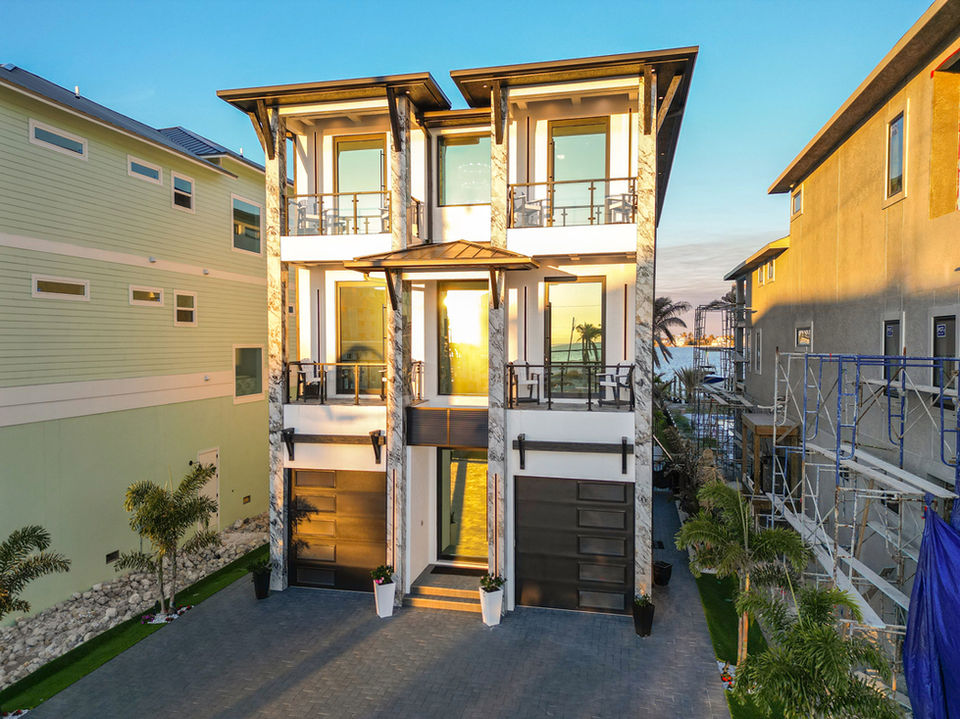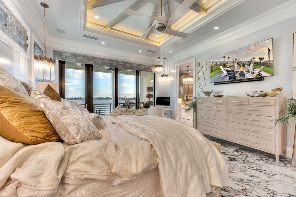 441 seamlessly merges modern luxury with coastal elegance while featuring 4 bedrooms and 4 bathrooms. This architectural masterpiece is designed for those who demand the unparalleled. Elevated to perfection, this home features 30-inch reinforced concrete slabs, PGT windows with advanced tinted glass, and a robust 24-gauge standing seam metal roof. The expansive bayside veranda offers panoramic views of San Carlos Bay and radiant sunrises. Inside, a symphony of curated details creates an ambiance of refined elegance. Architectural resin pecky cypress beam ceilings, monolithic quartzite slab surfaces, and Lauriermax cabinetry add depth and texture. A Sonos entertainment system, smart-controlled blinds, and a full-spectrum LED lighting design enhance modern living.