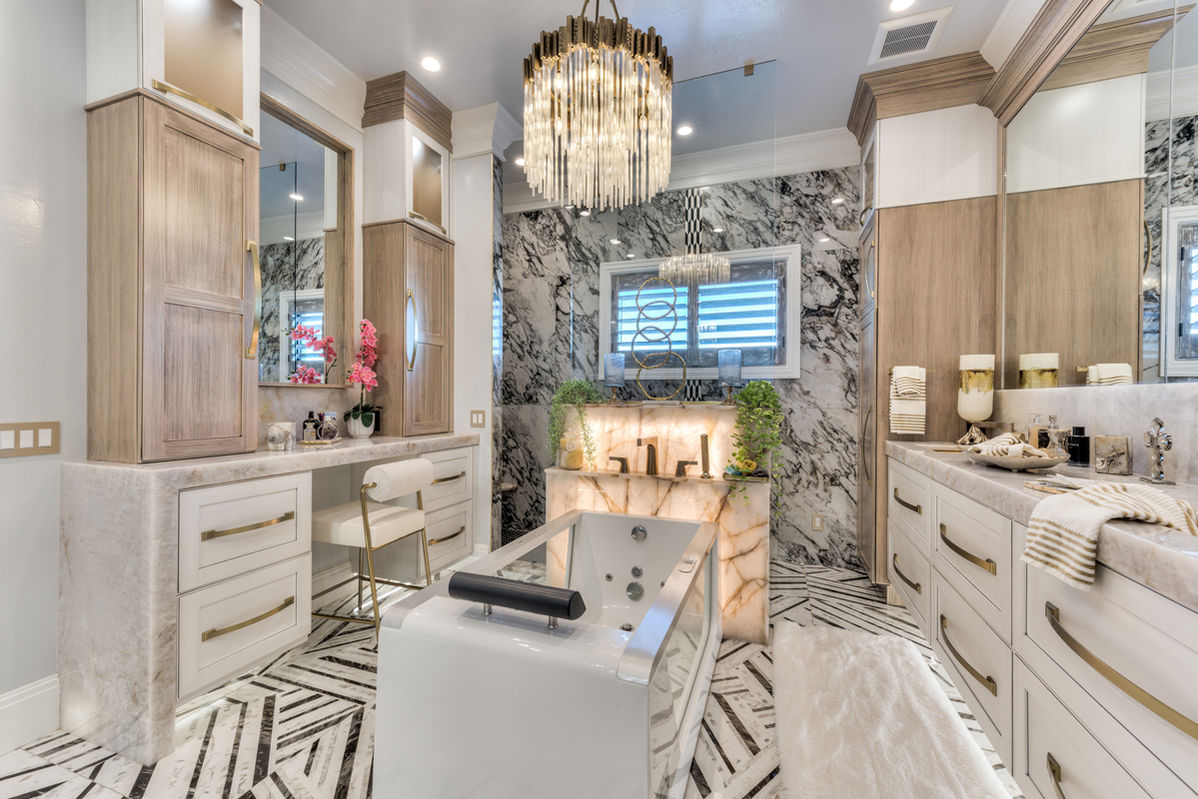 The exterior is a private oasis with a pool featuring custom underwater seating, an alfresco culinary space, lush landscaping with a hydration system, and a high-performance dock capable of accommodating multiple vessels, one up to 15,000 lbs and one up to 6,000 lbs. The intricate details and bespoke appointments are abundant, defying description—A true masterpiece that must be experienced to be fully appreciated.