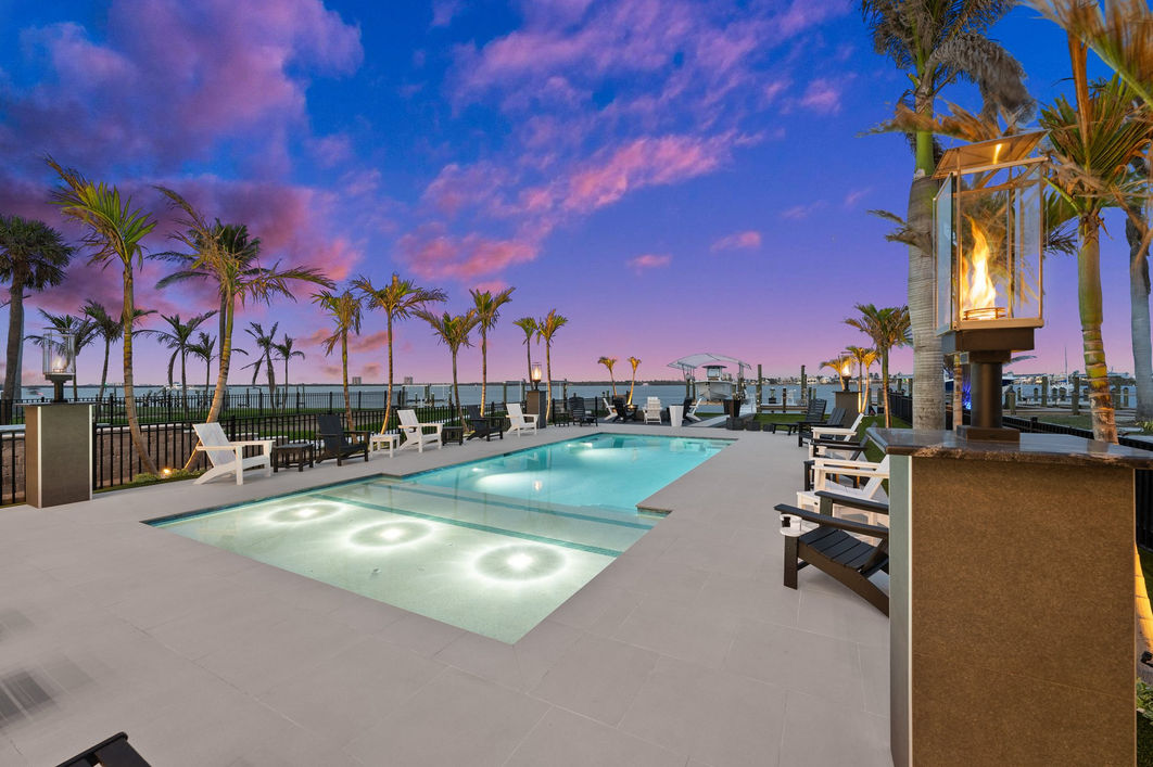 The exterior is a private oasis with a pool featuring custom underwater seating, an alfresco culinary space, lush landscaping with a hydration system, and a high-performance dock capable of accommodating multiple vessels, one up to 15,000 lbs and one up to 6,000 lbs. The intricate details and bespoke appointments are abundant, defying description—A true masterpiece that must be experienced to be fully appreciated.